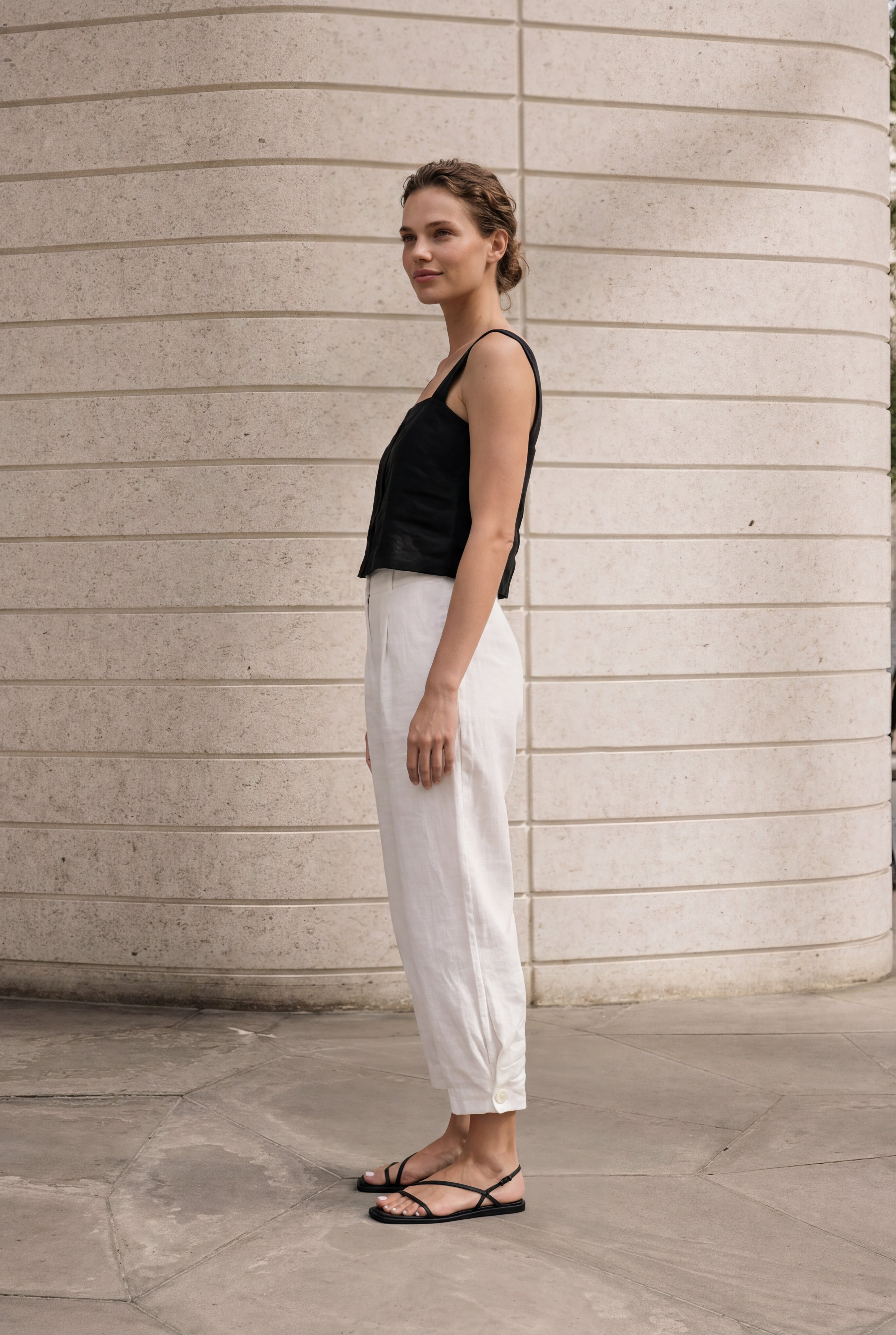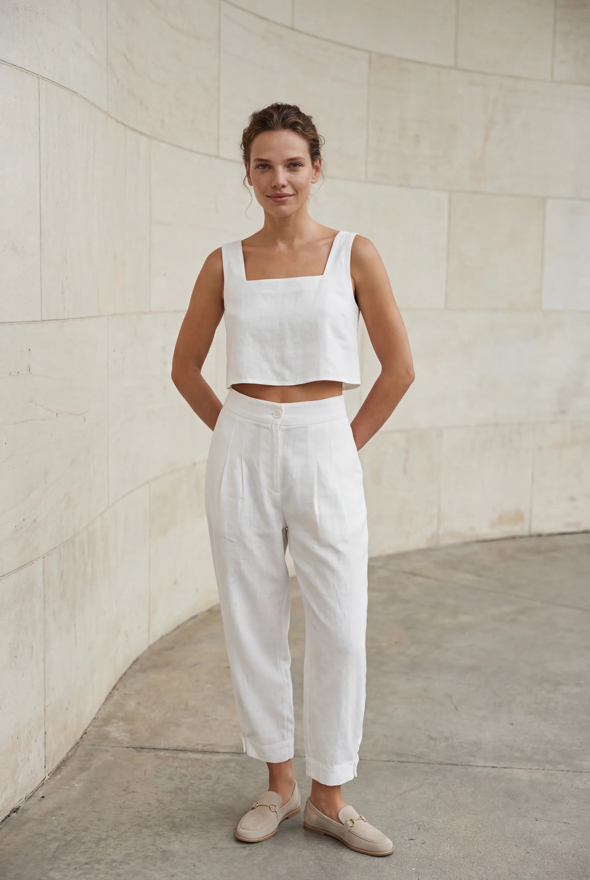 The high-waisted tapered-leg linen pants.