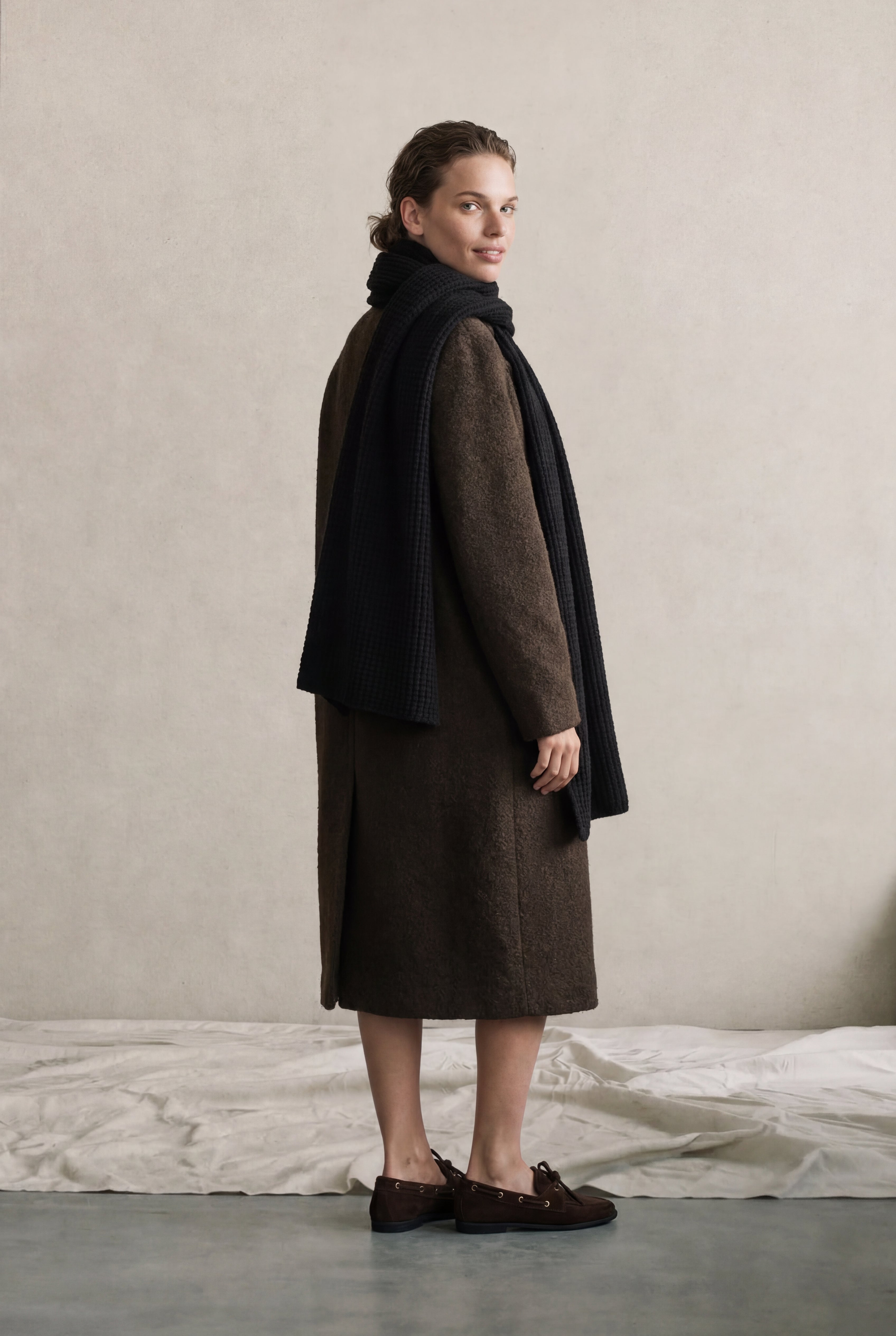 Known for its superior hand feel, this scarf is both warm and comfortable. Pair the oversized scarf with our matching knit jerseys and pants for a truly luxurious lounging experience.