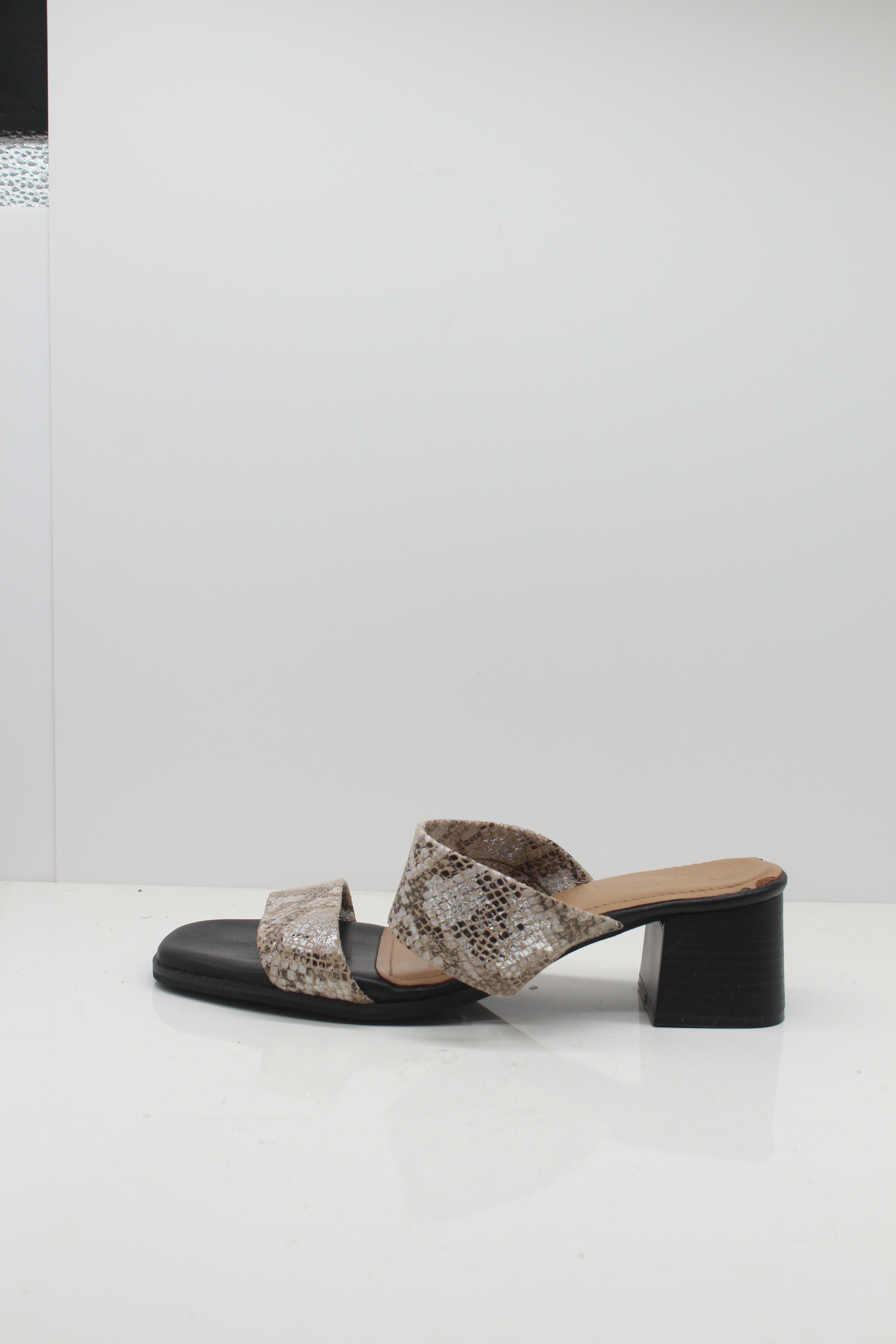 SALE - 6, Metallic snake, St Tropez , Block heel