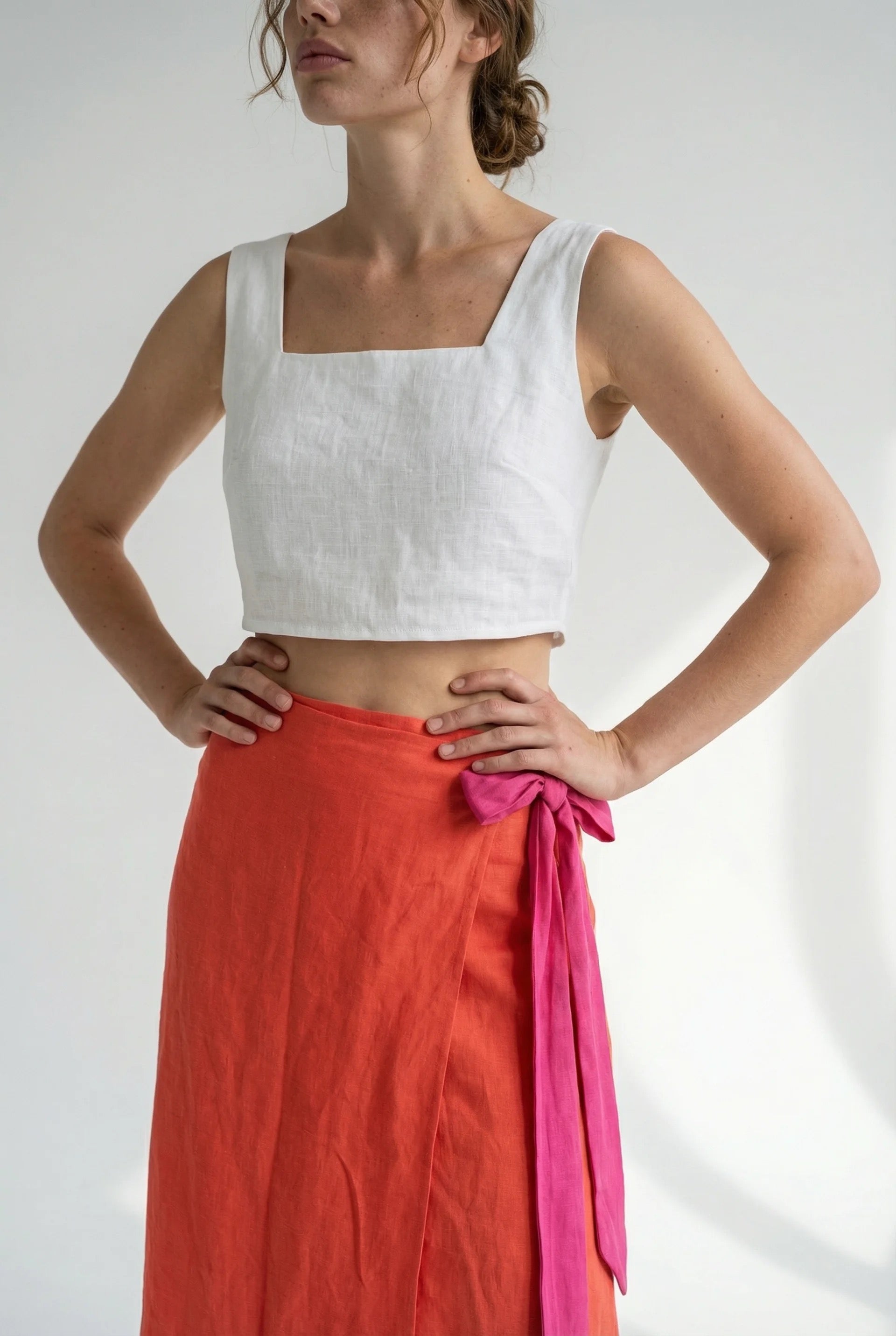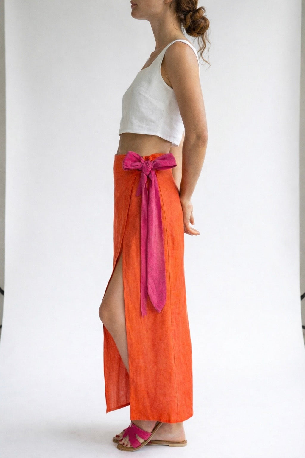 SALE - XS/S, Papaya Coral &. Fuchsia pink, Wrap skirt