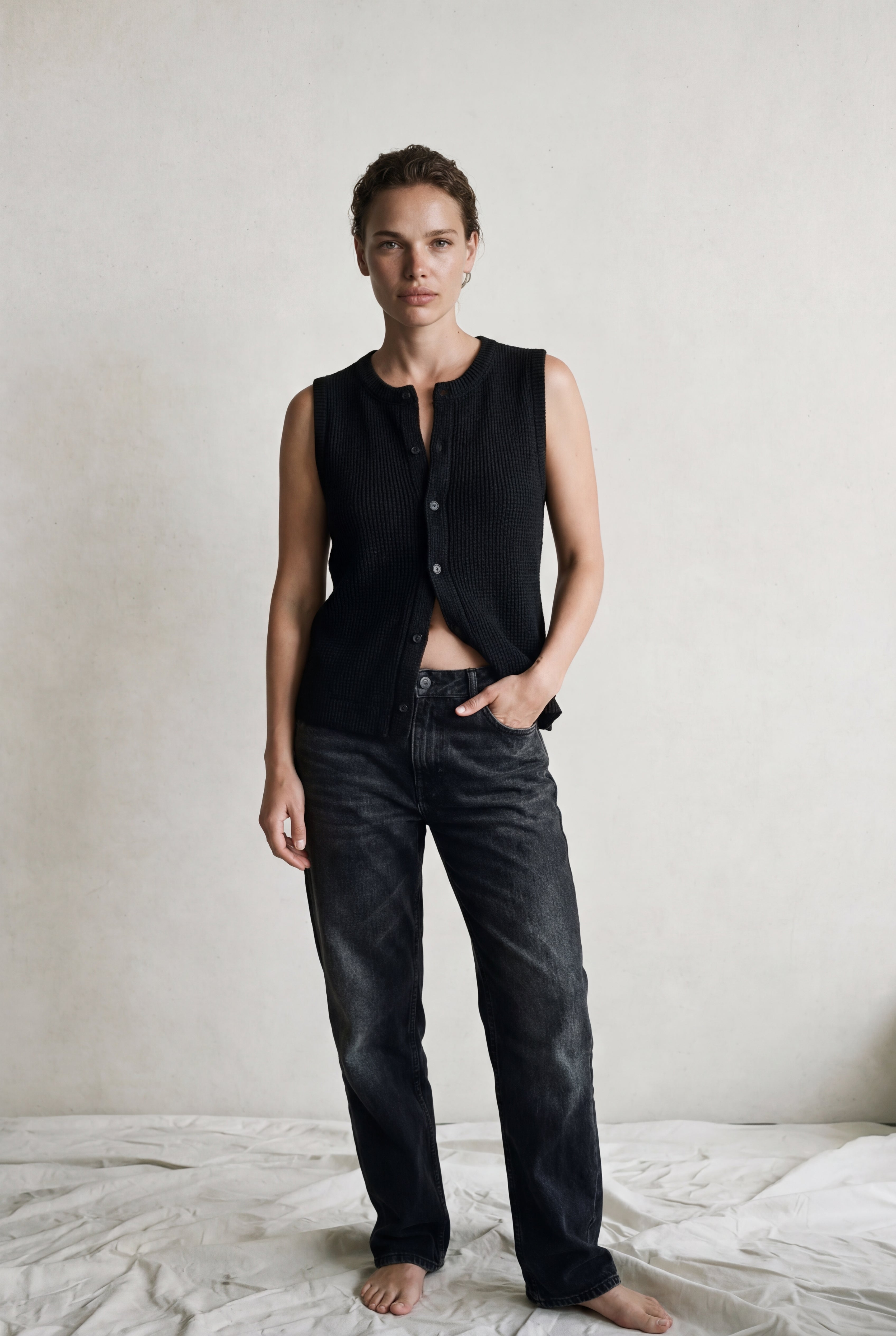 The Button-up knit Crew-neck Vest