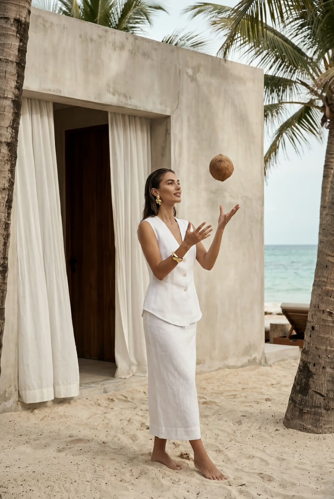 - Linen ties to fasten at the back